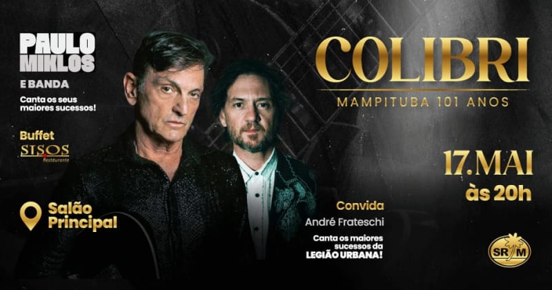 No dia 17 de maio , às 20h, o Salão Social Abílio Paulo abre suas portas para um momento inesquecível: o Colibri em comemoração aos 101 anos da Sociedade Recreativa Mampituba.
