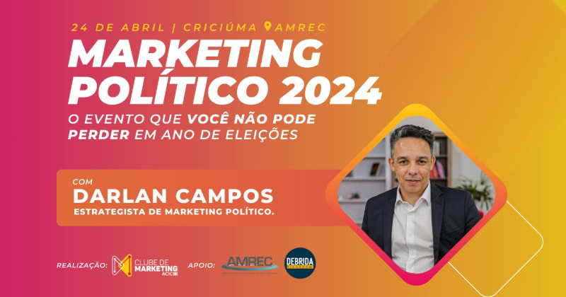 O lançamento nacional segue em curso e Santa Catarina será contemplada com a presença do autor e palestrante, Darlan Campos, durante os eventos de Marketing Político que acontecem em Rio do Sul (23 de abril) e Criciúma (24 de abril).